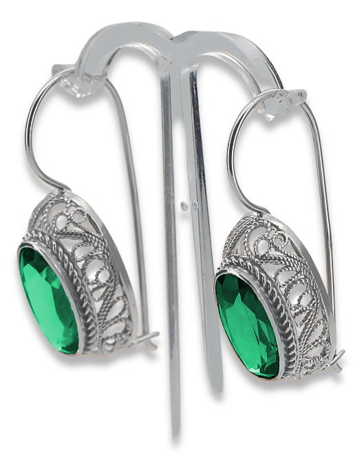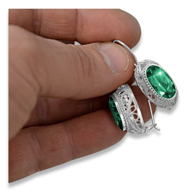 Vintage silver 925 Emerald earrings vec023s Russian Soviet style vec023s-em
