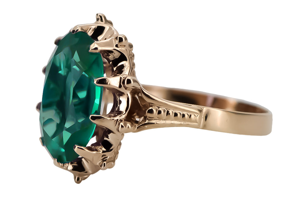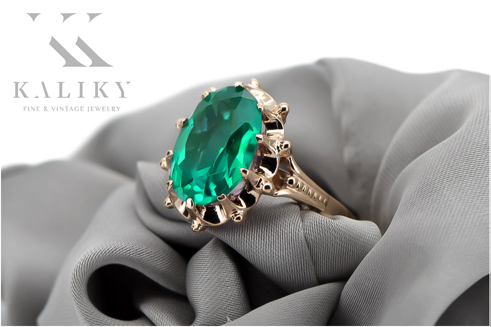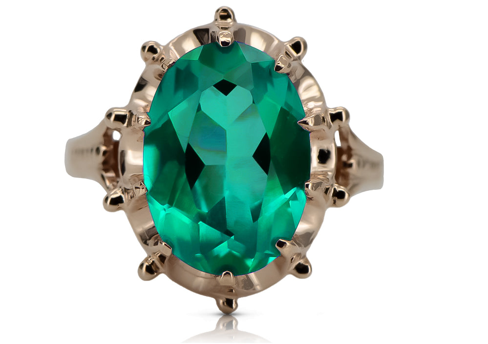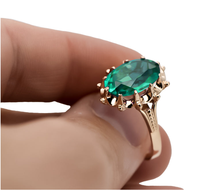 Vintage Silver 925 Emerald Ring, Oval 14k Rose Gold