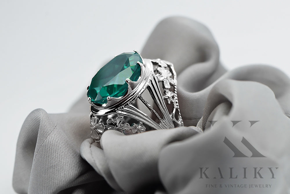 Vintage silver 925 Emerald ring vrc031s Vintage