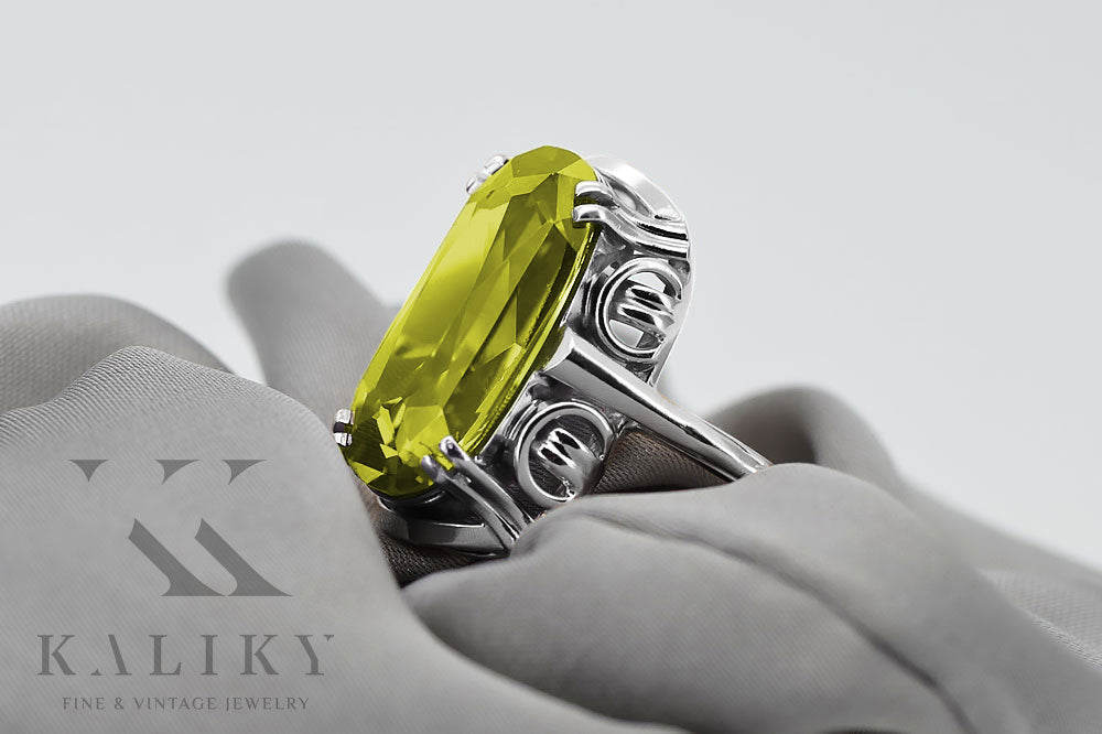 Vintage silver 925 Peridot ring vrc038s Vintage