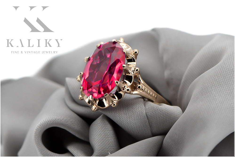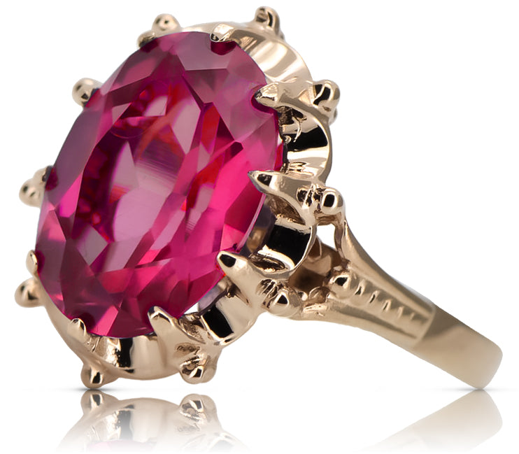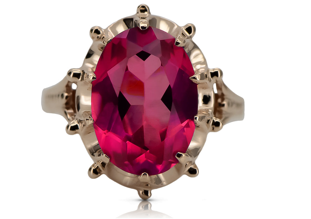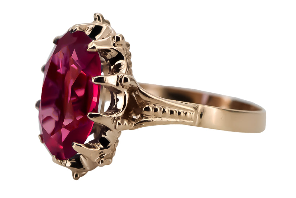 Vintage Silver 925 Ring with Oval Ruby in Rose Gold