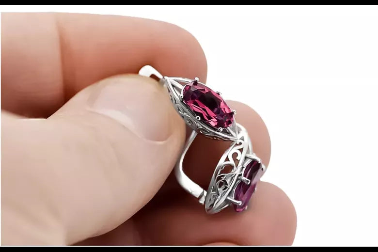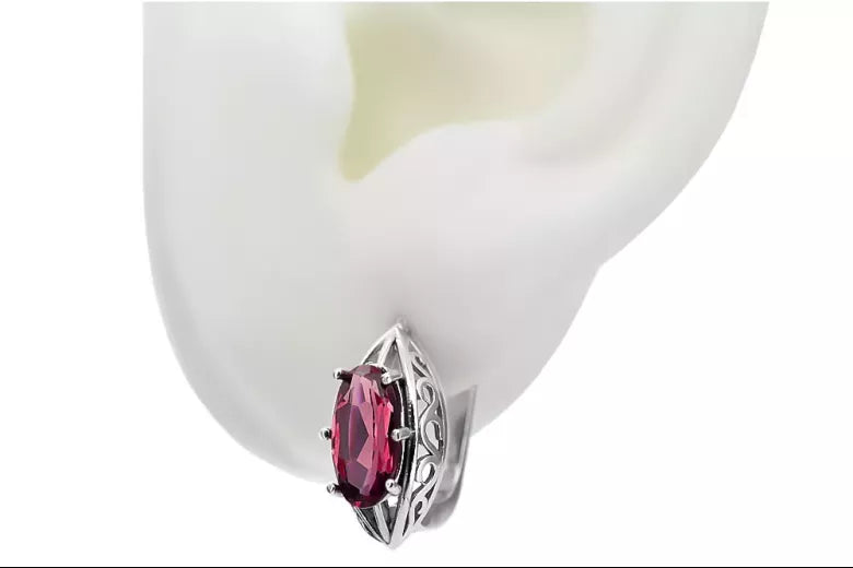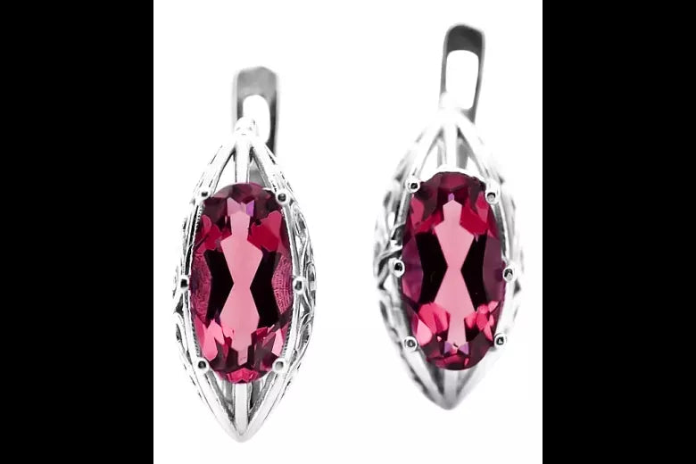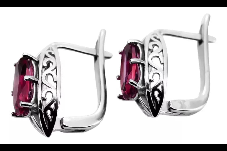Vintage Silver 925 Ruby Earrings, Oval Stone, Wedding Gift vec141s-rb
