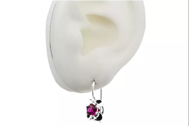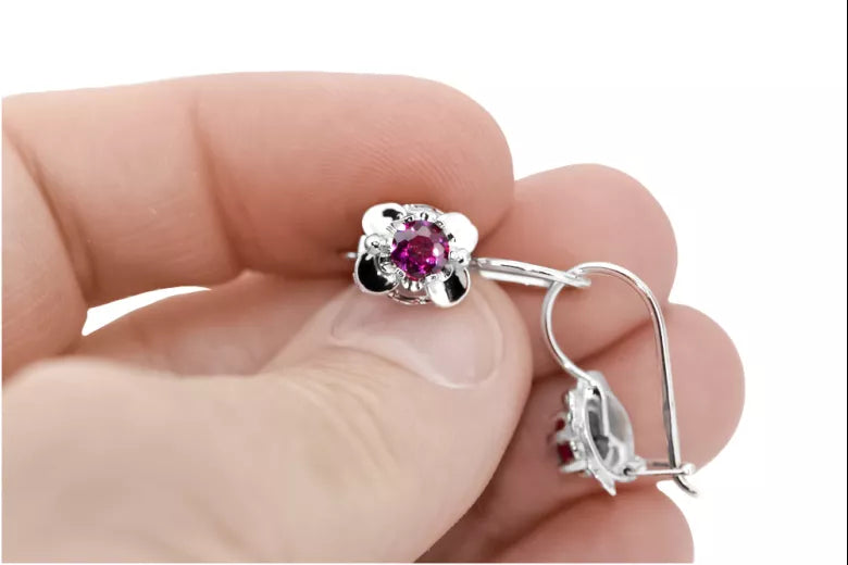 Vintage silver 925 Ruby earrings vec116s Russian Soviet style vec116s-rb