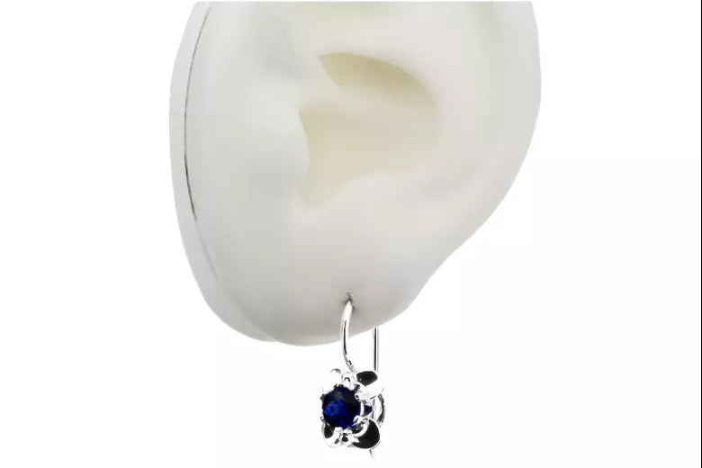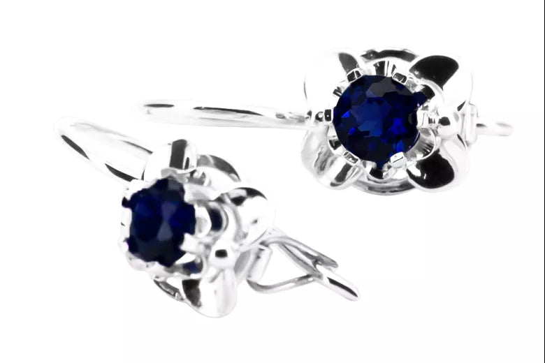 Vintage silver 925 Sapphire earrings vec116s Russian Soviet style vec116s-sp