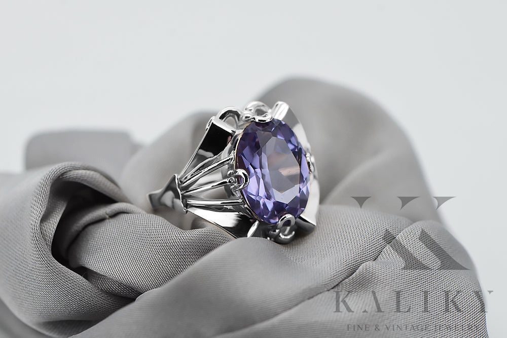 Vintage Silver Ring 925 with Alexandrite, Oval 10x14mm