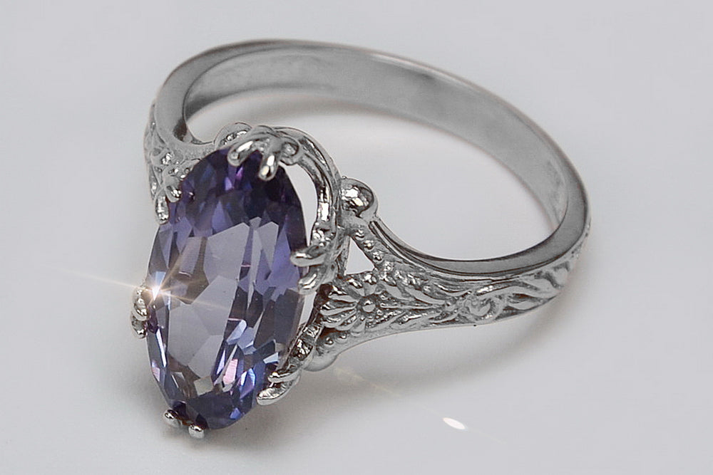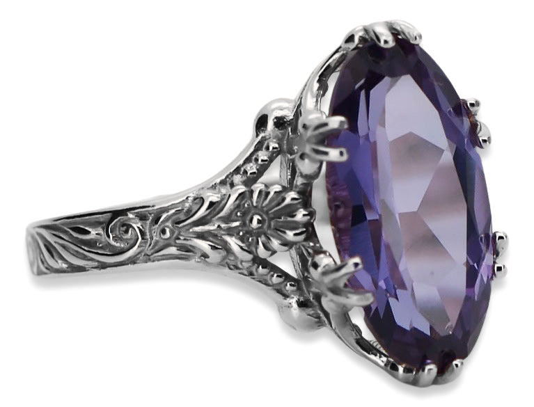 Vintage Silver Ring 925 with Alexandrite, Oval 8mm/15mm