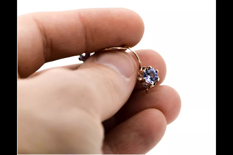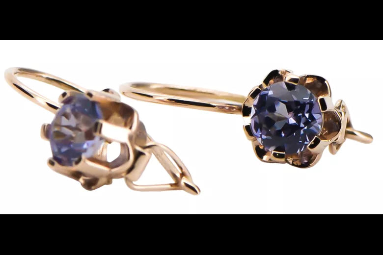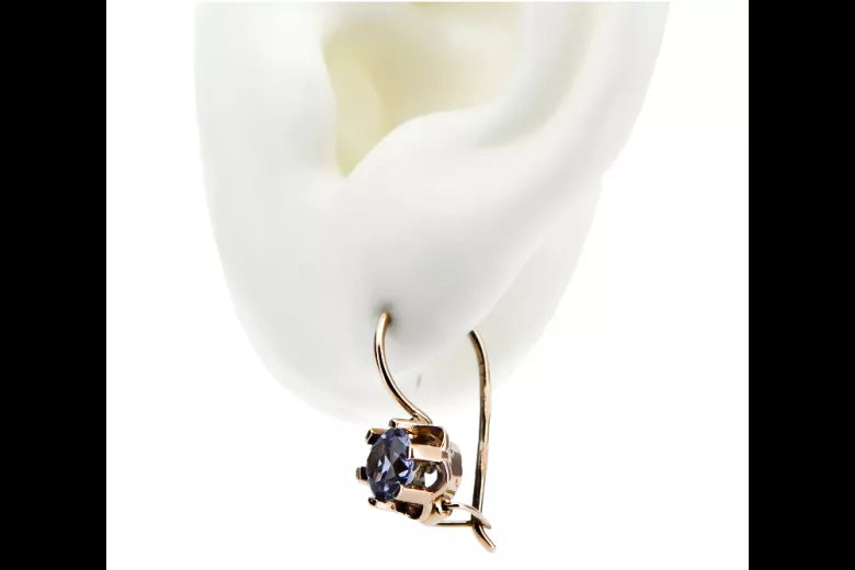 Vintage style aleksandrite earrings 14K Rose pink gold vec019r vec019r-ax