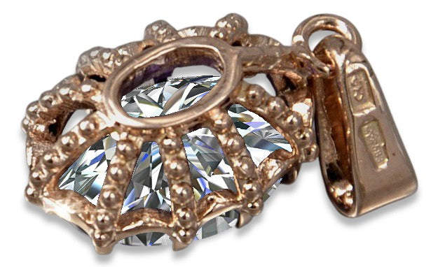 Vintage style Pendant Zircon Original Vintage 14K Rose Gold vpc008r vpc008r-zi