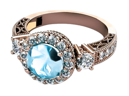 Vintage style Ring Aquamarine Original Vintage 14K Rose Gold crc003r