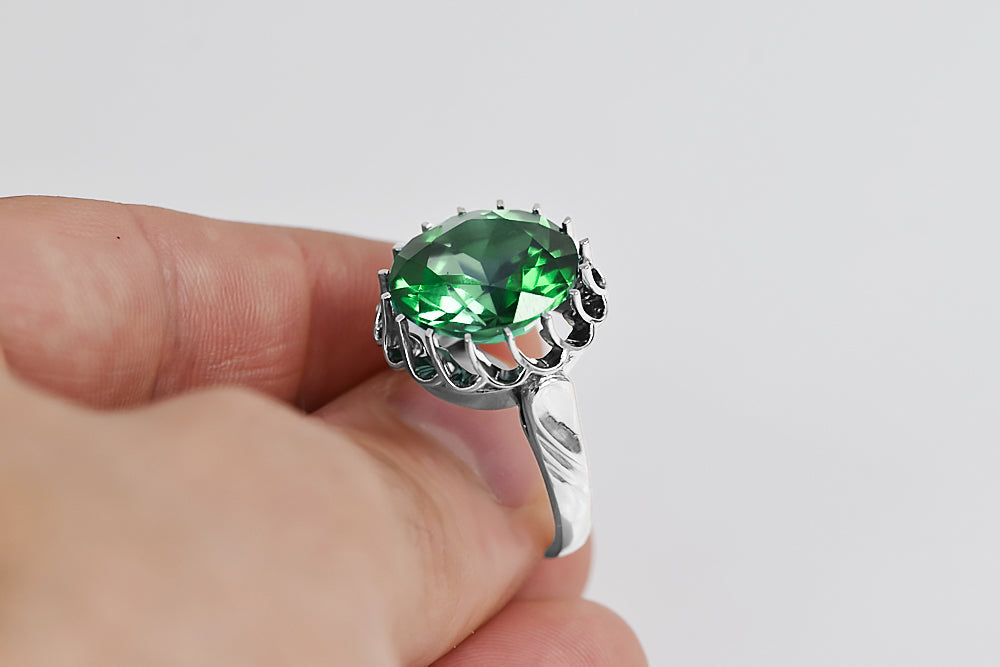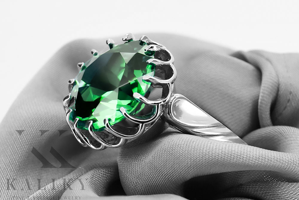 Vintage style Ring Emerald Sterling silver 925 vrc035s