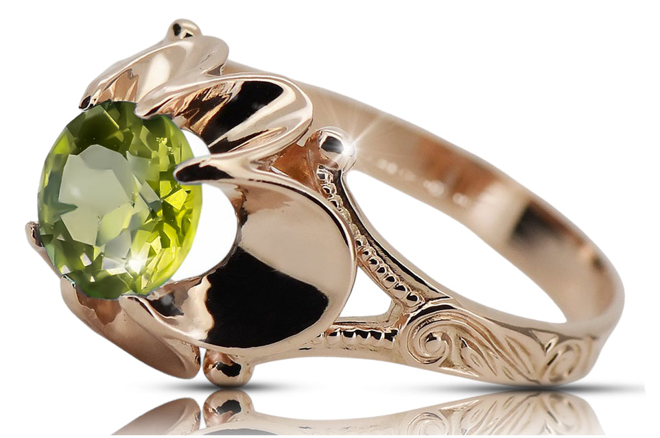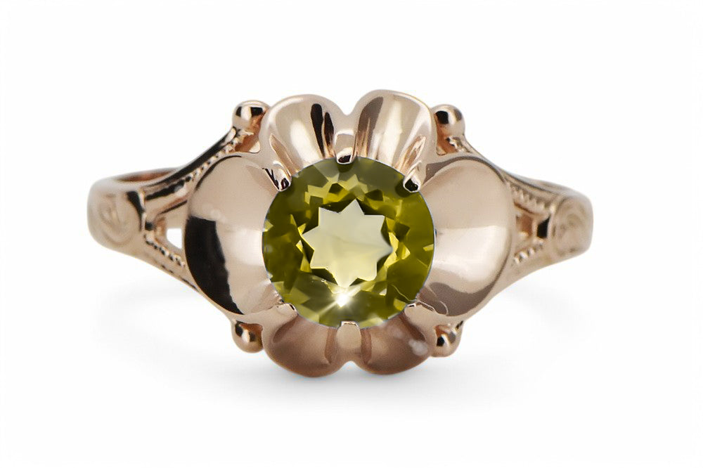 Vintage style Ring Yellow Peridot Original Vintage 14K Rose Gold vrc377r