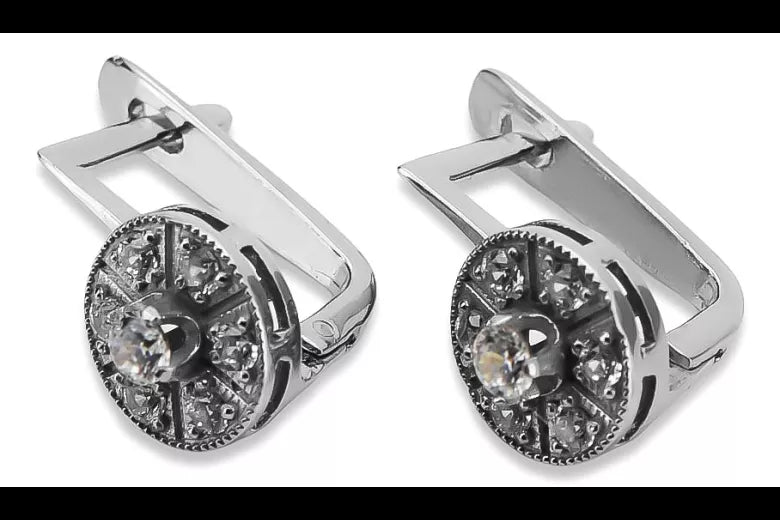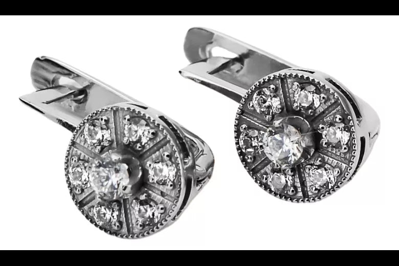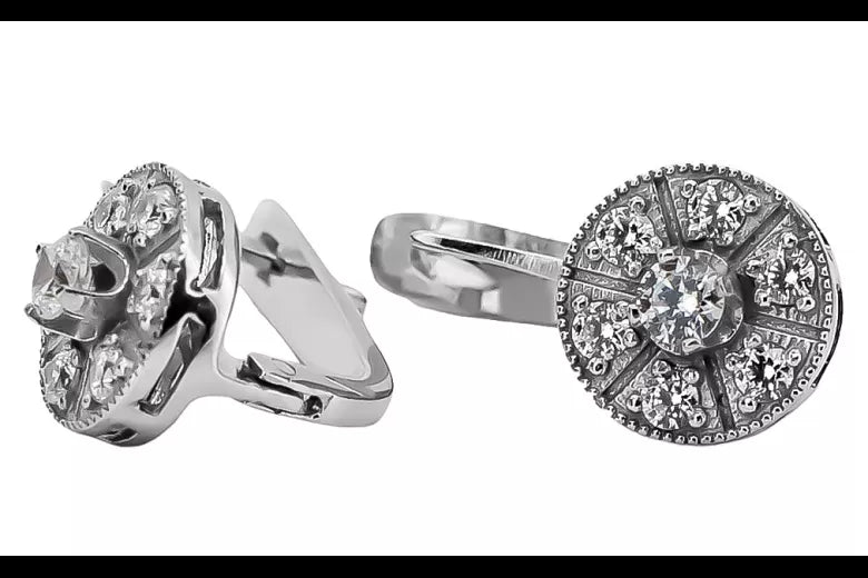 Vintage white 14k 585 gold zircone earrings vec161w Vintage vec161w-zi