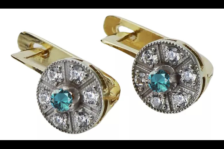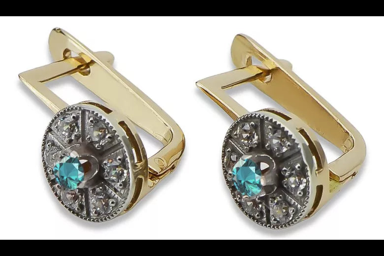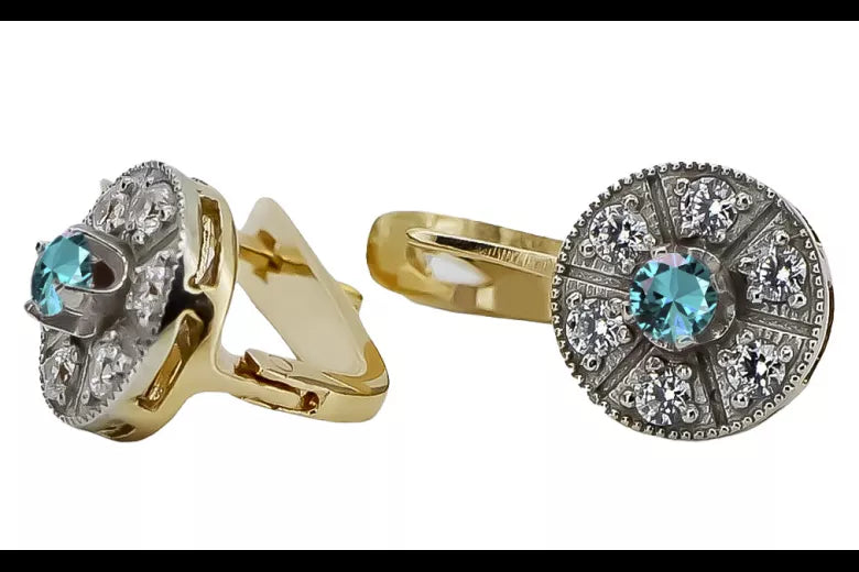 Vintage yellow 14k 585 gold aquamarine earrings vec161yw Vintage vec161yw-aq