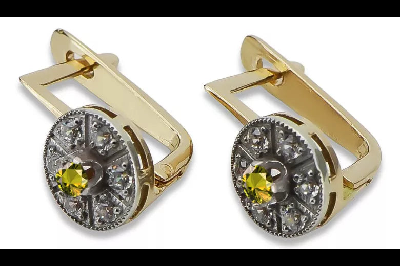 Vintage yellow 14k 585 gold peridot earrings vec161yw Vintage vec161yw-yp