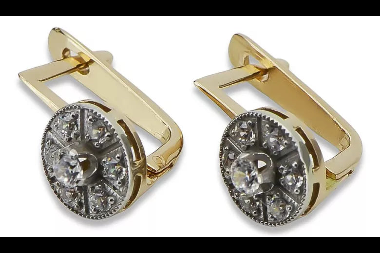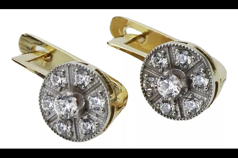 Vintage yellow 14k 585 gold zircone earrings vec161yw Vintage vec161yw-zi