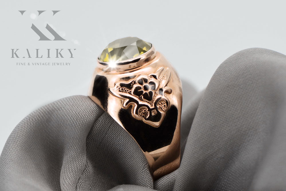 Yellow Peridot Original Vintage 14K Rose Gold Ring Vintage style vrc078r